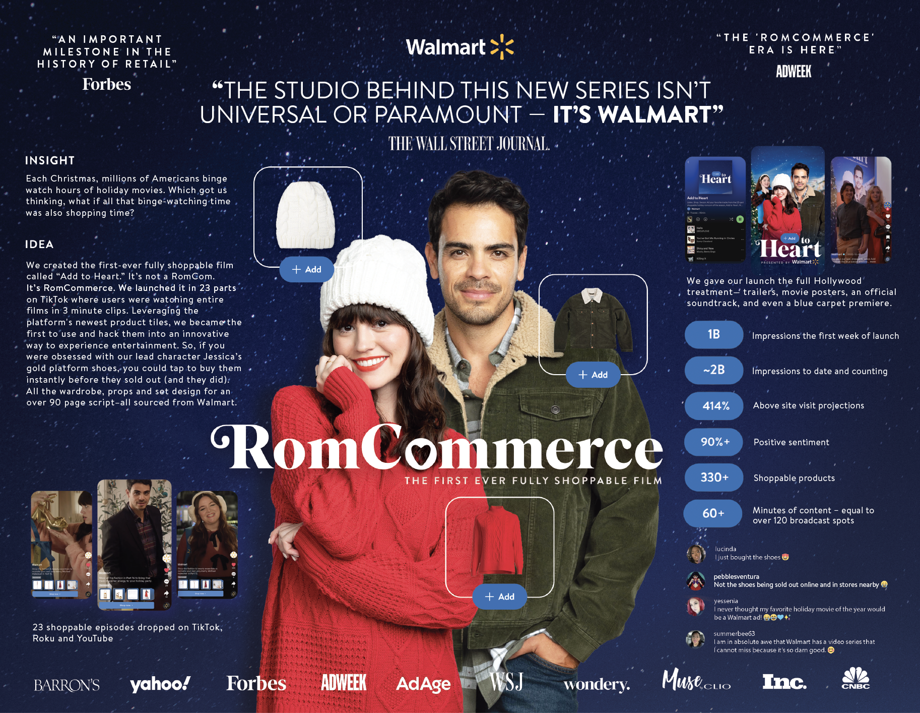 Launched on Roku, TikTok, and YouTube, the series follows Jessica, a big city designer, who reunites with her former flame, Javi, in her small hometown while holiday shopping at Walmart. Locked in the store overnight, they rekindle their romance amidst the festive setting.